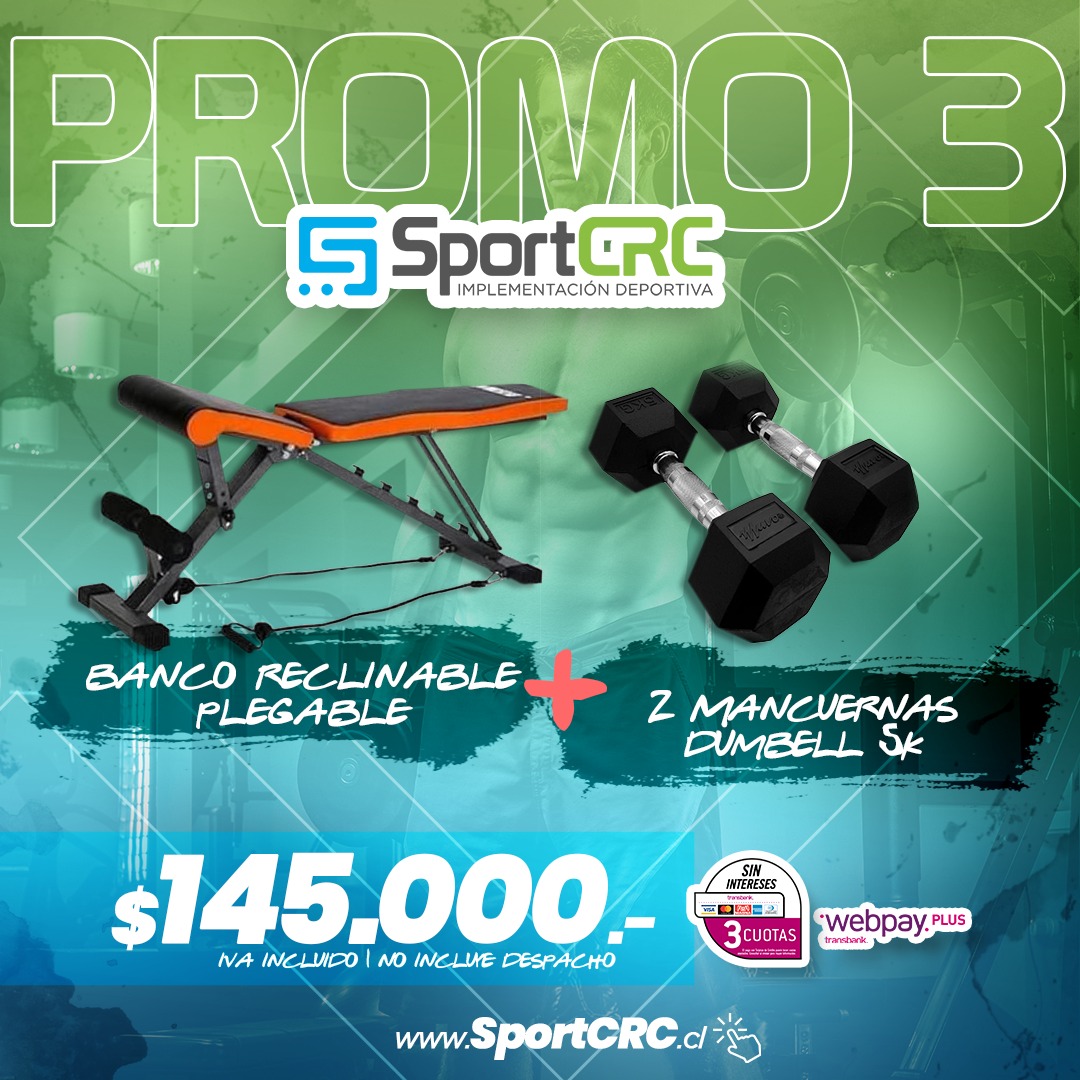 Banco reclinable plegable + par de mancuernas dumbell de 5 kg c/u
